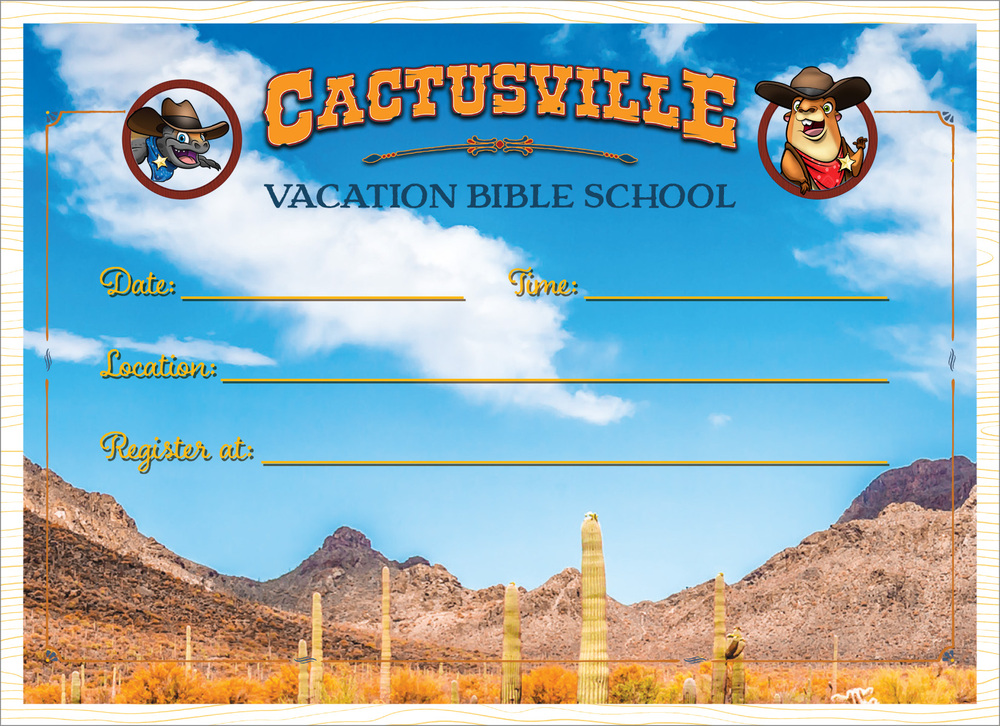 Use these postcards to invite families to your Cactusville VBS. Sold in packages of 100.