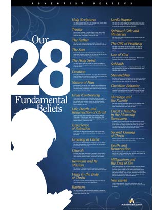 This poster briefly describes the Seventh-day Adventist Church's 28 fundamental beliefs in terms children can understand.